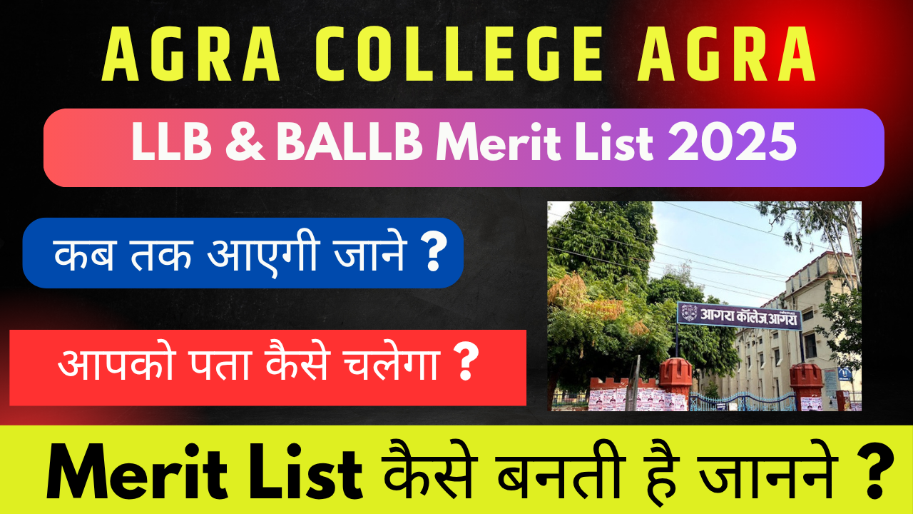 आगरा कॉलेज उत्तर भारत के सबसे पुराने कॉलेजों में से एक है ( Agra College Agra LLB and BALLB merit List )या हर साल हजारों छात्र कानून की पढ़ाई के लिए मतलब LLB और BALLB के लिए आवेदन करते हैं। सत्र 2025 26 के लिए एडमिशन प्रक्रिया जारी है और 1 अक्टूबर तक आवेदक फॉर्म भर सकते। ऐसे में सबसे बड़ा सवाल यह है कि LLB और BALLB की मेरिट लिस्ट कब जारी होगी। इस लेख पूरा देखे, जिससे आपके सब कुछ समझ में आ जाए और आपको कोई दिक्कत का सामना न करना पड़े।